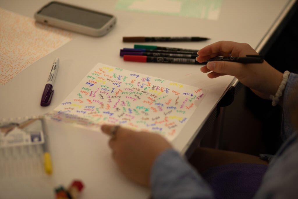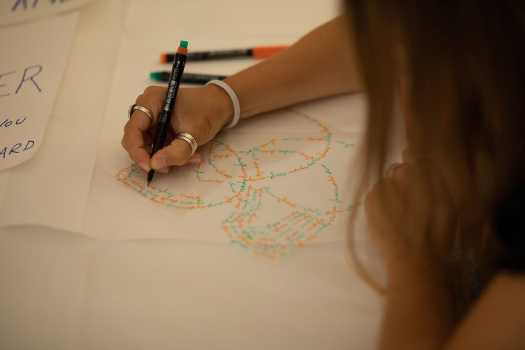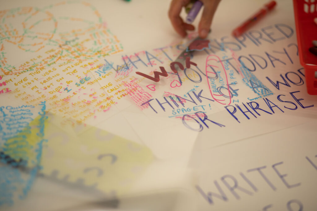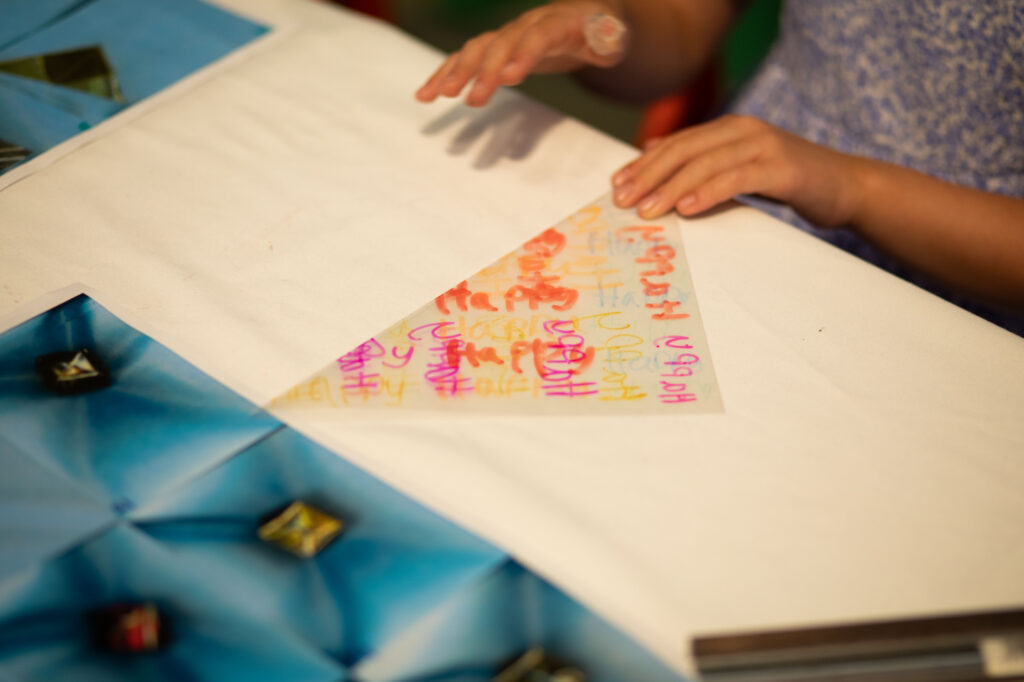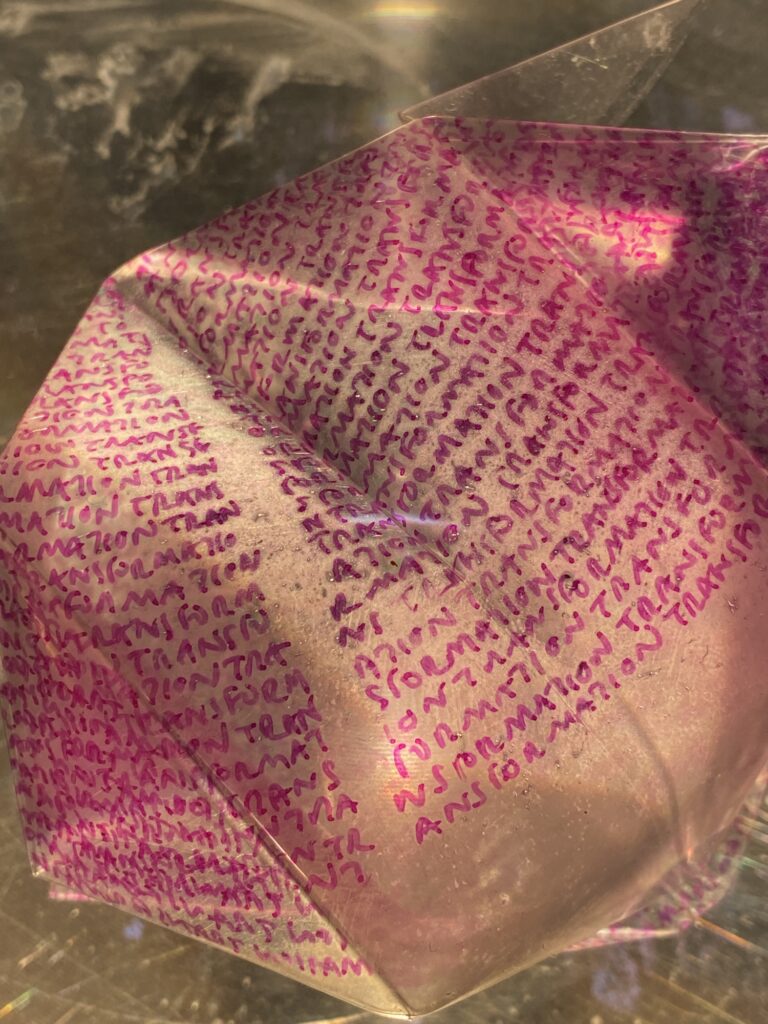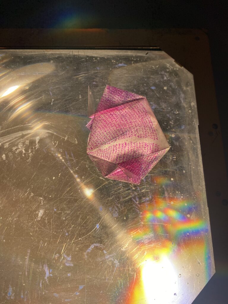 This workshop explored themes of writing, paper folding, speech and memory drawing on both our artistic practices. Taking place as part of Towner Late, visitors were invited to drop in to write, perform and create small objects through which to project their words.