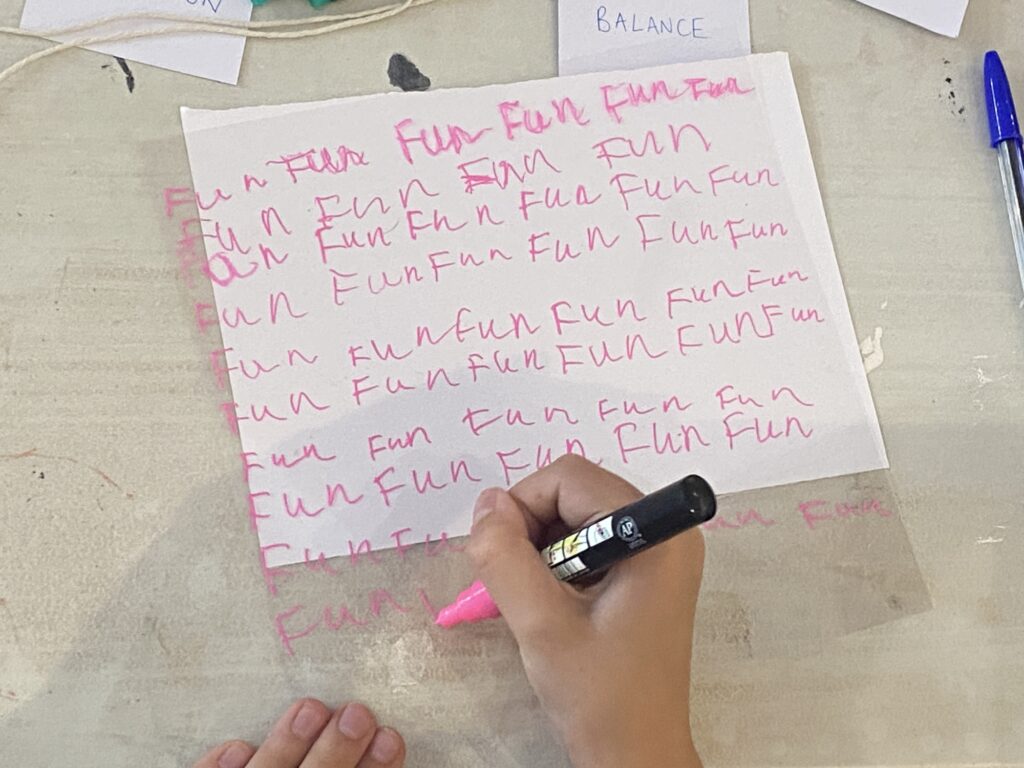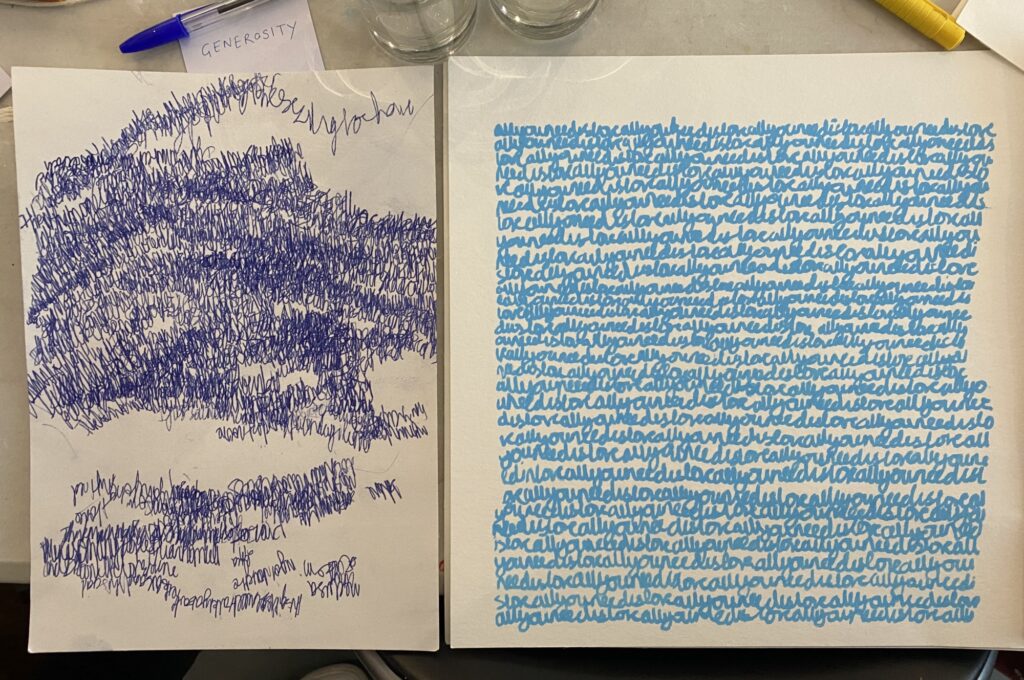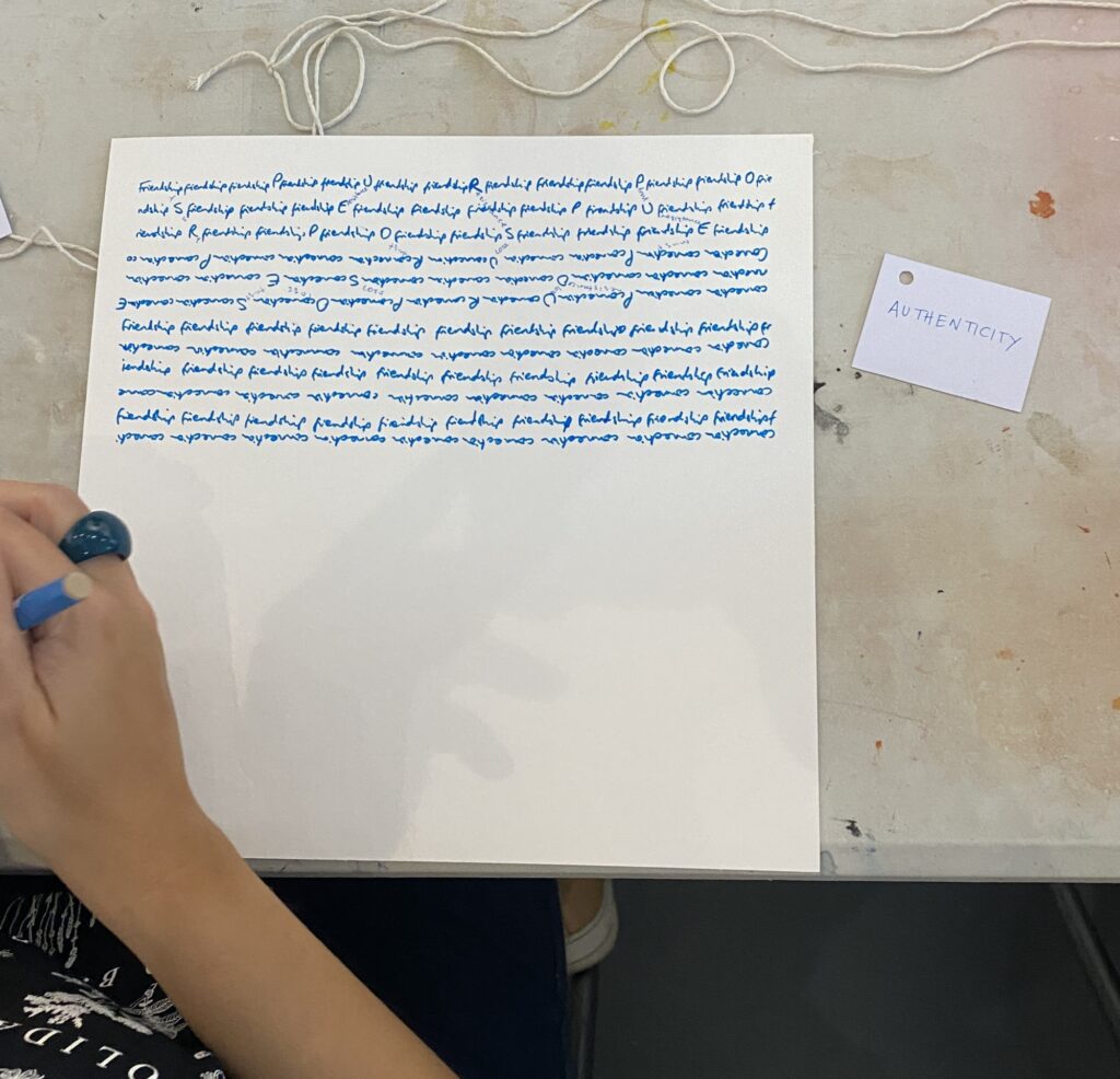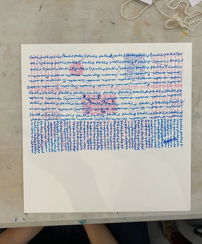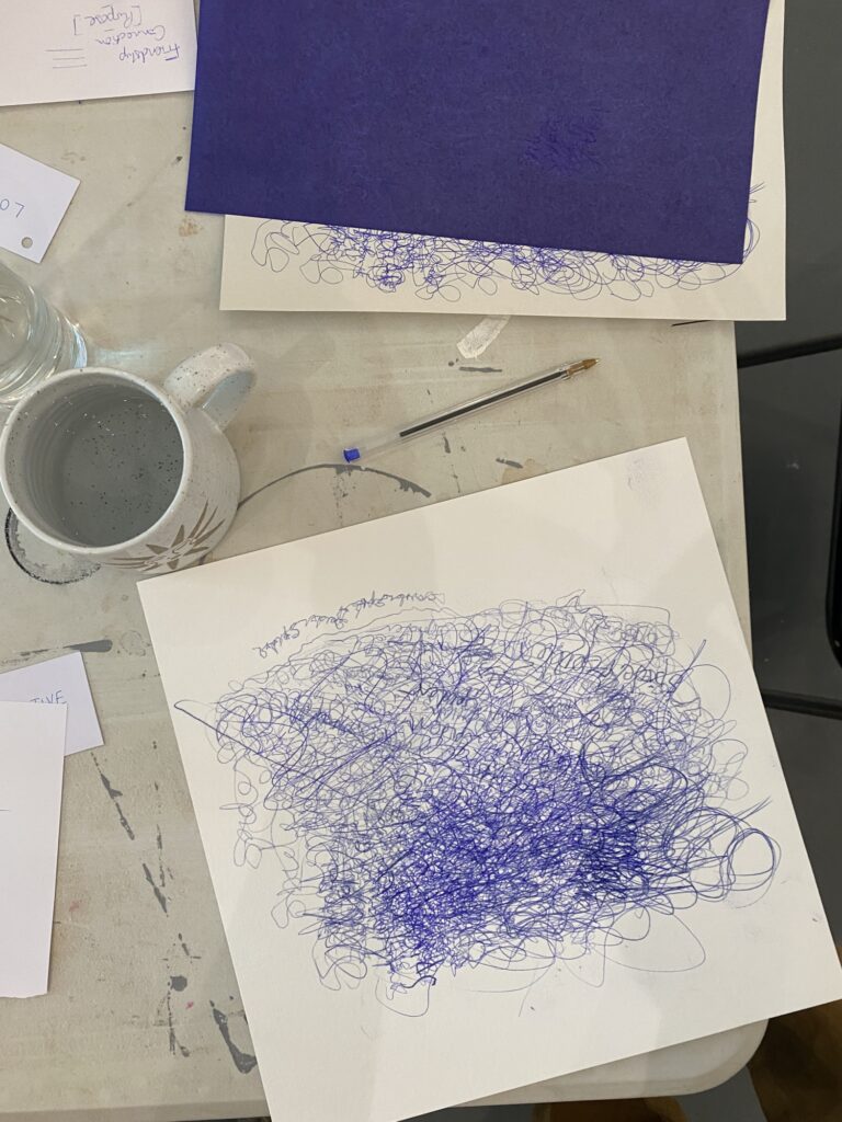 An experimental drawing workshop inspired by my own practice and the exhibition of artist, Ismini Samanidou. Participants were invited to explore words that emerged within the space and transform them into handwritten drawings across a range of surfaces.