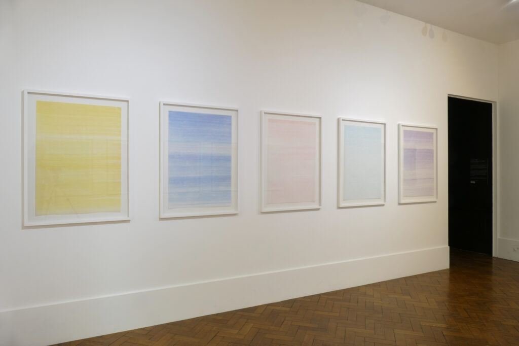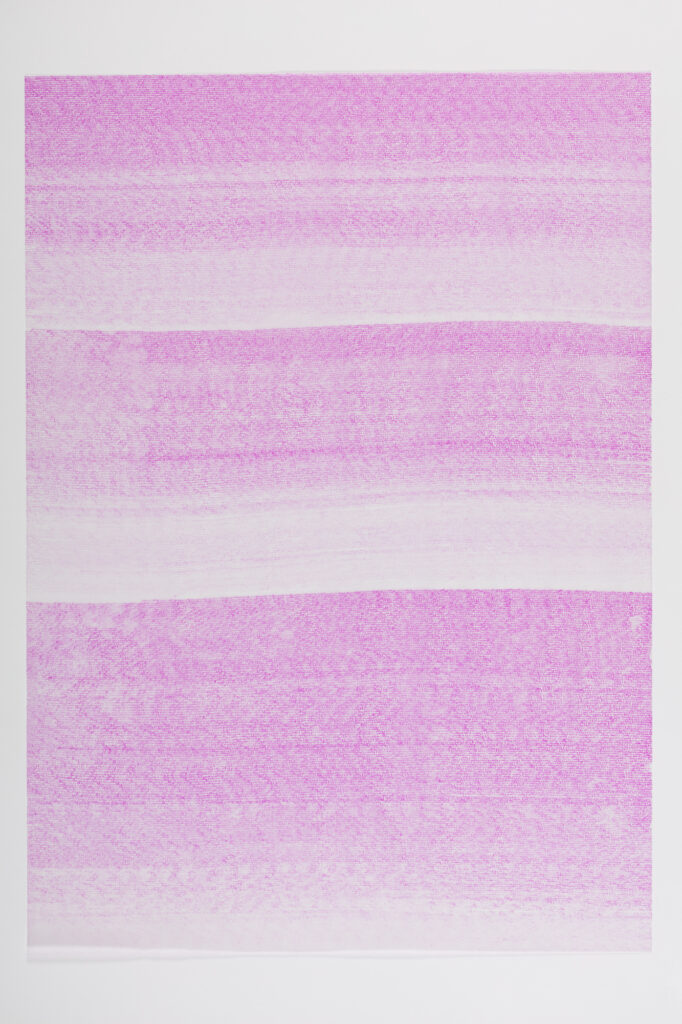 This series of works was created by a laborious process of writing the same word over and over again on a single sheet of A1 tracing paper. Made over the course of a year, on the kitchen tables of different family and friends while I was living nomadically across the UK, they illustrate my extraordinary commitment, patience and strength of will for the task.
