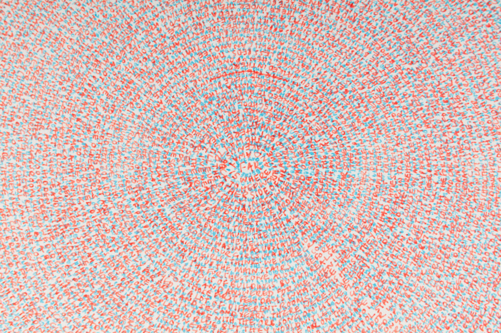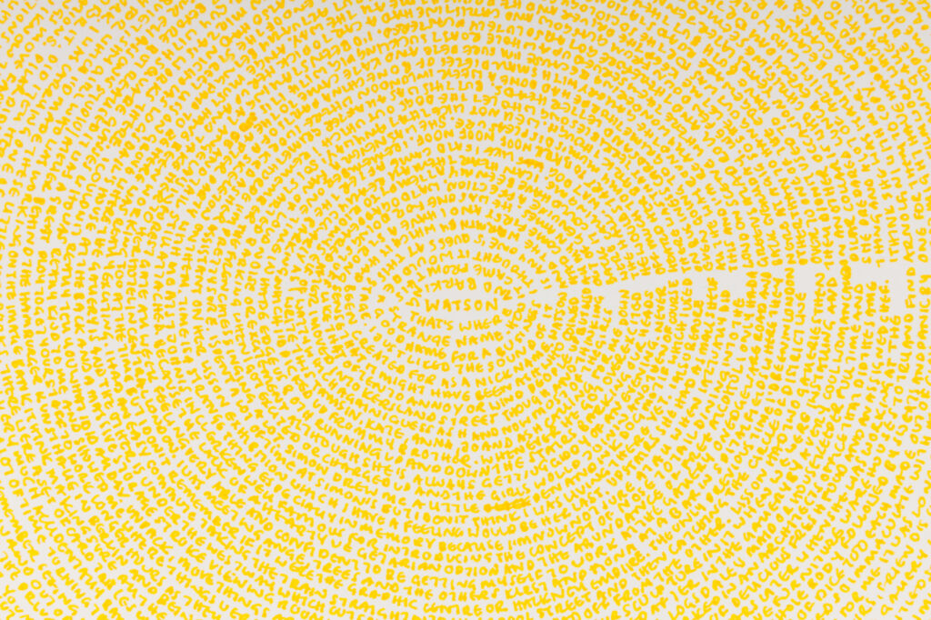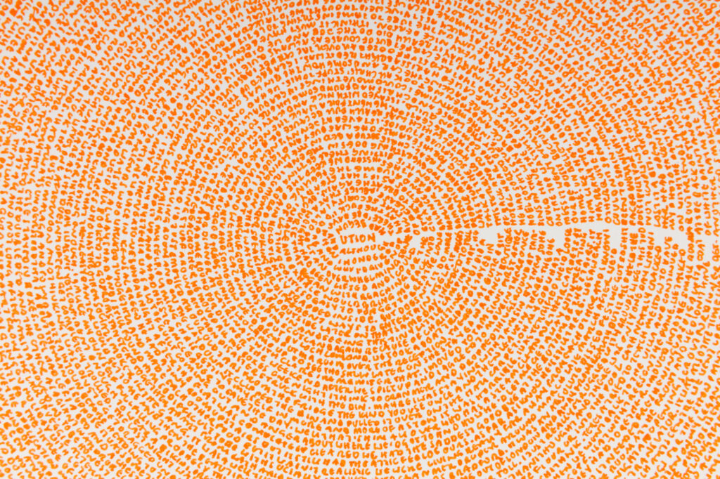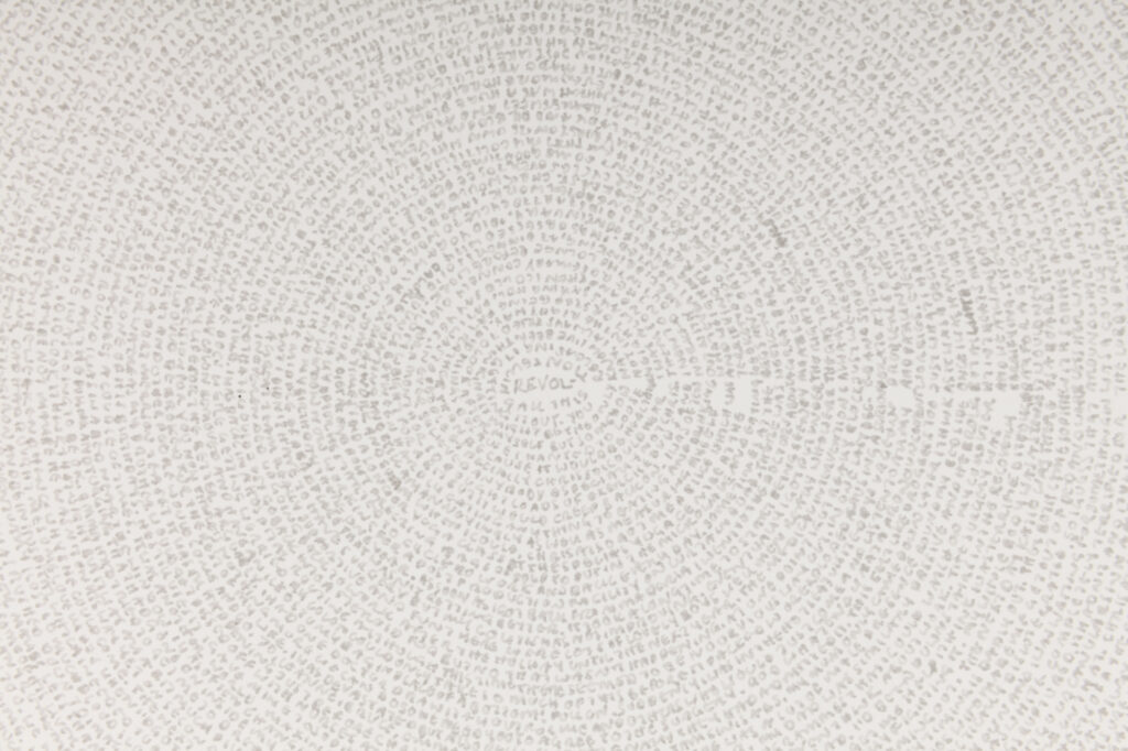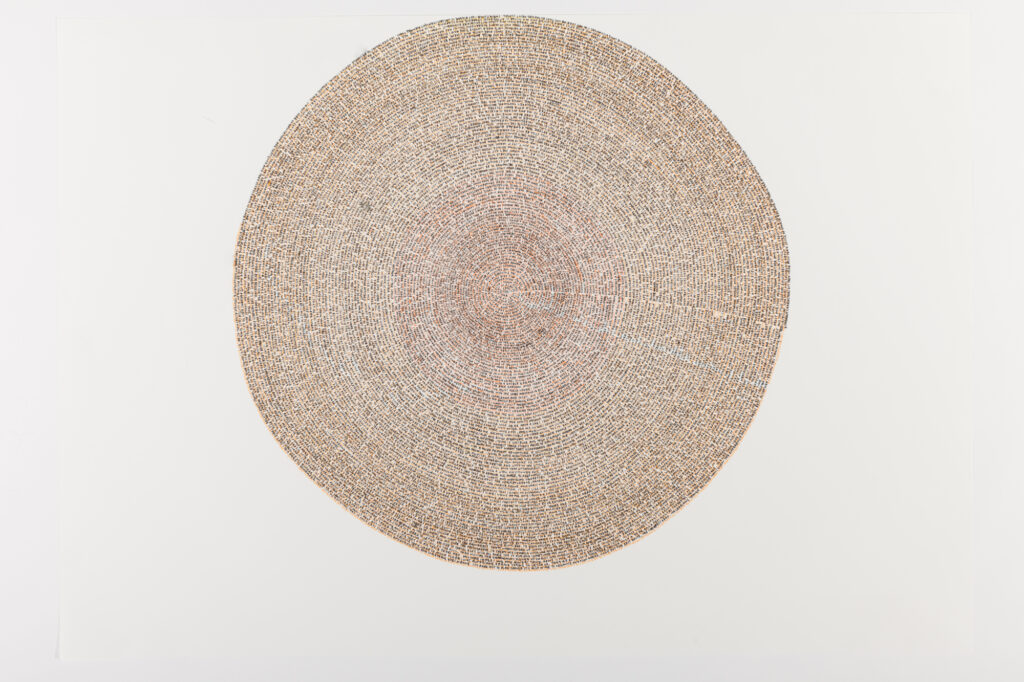 ‘The story so far…’ emerged through my daily ritual, sitting and writing while turning the pages round and round, pouring her memories onto each sheet. Akin to one off daily performances the resulting works contain an imprint of this charged, intimate and repetitive act and are a record of this time as well as the past they contain.