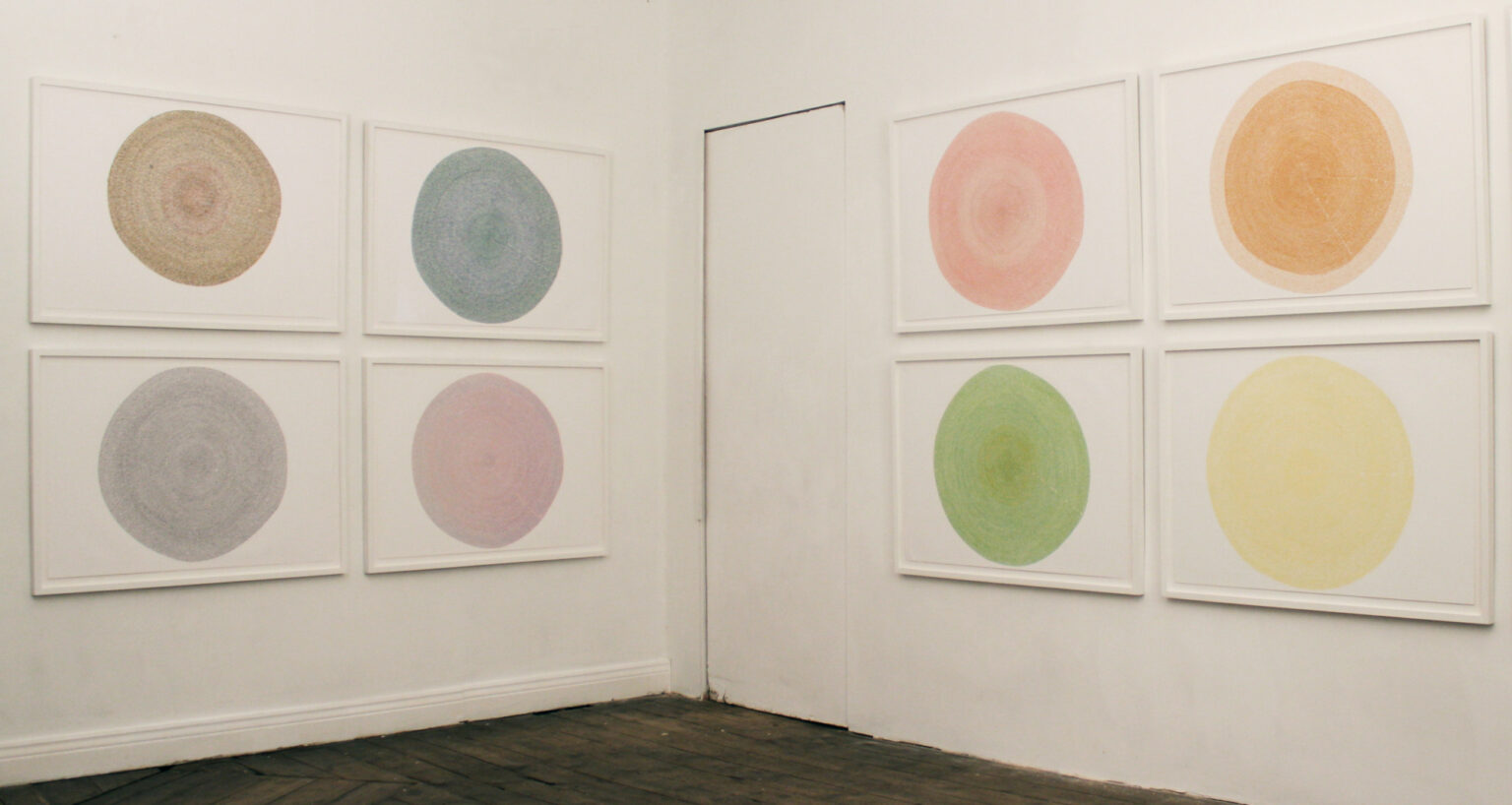 The 13 drawings represent the number of moon cycles which can occur over a year. I chose colours to reflect the names traditionally given to each moon cycle: Blue Moon, Pink Moon, Harvest Moon.